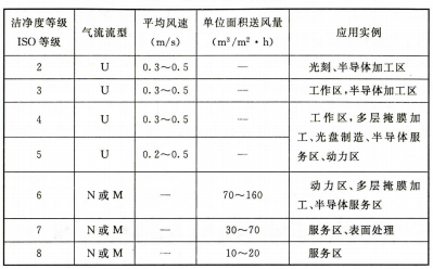 6.1.2 應(yīng)根據(jù)空氣潔凈度等級(jí)的不同要求,選用不同的氣流流型。