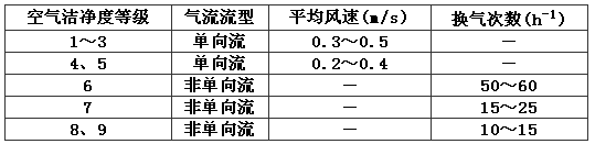 注:1 換氣次數(shù)適用于層高小于4.0m的潔凈室;