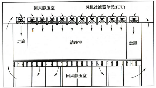 圖2 風(fēng)機(jī)過(guò)濾器單元送風(fēng)方式(FFU)示意圖