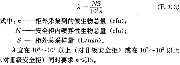 F.3.3 安全柜隔離系數(shù)λ按下式評價: