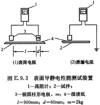 E.9.2 地面、墻面和工作臺面等表面導靜電性能應采用符合精度要求的高阻計檢測。