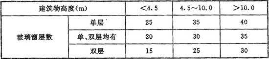 F.0.6 生產(chǎn)廠房、倉(cāng)庫(kù)、公用輔助建筑物,加熱由門窗縫隙滲入室內(nèi)的冷空氣的耗熱量占圍護(hù)結(jié)構(gòu)總耗熱量的百分率可按表F.0.6確定。