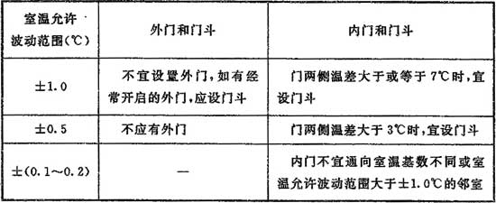 8.1.12 工藝性空氣調(diào)節(jié)區(qū)的門和門斗應(yīng)符合表8.1.12的規(guī)定。外門門縫應(yīng)嚴(yán)密,當(dāng)門兩側(cè)的溫差大于或等于7℃時(shí),應(yīng)采用保溫門。